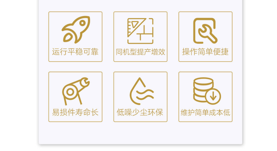 優勢特點:運行平穩可靠、同機型提產增效、操作簡單便捷、易損件壽命長、低噪少塵環保、維護簡單成本低